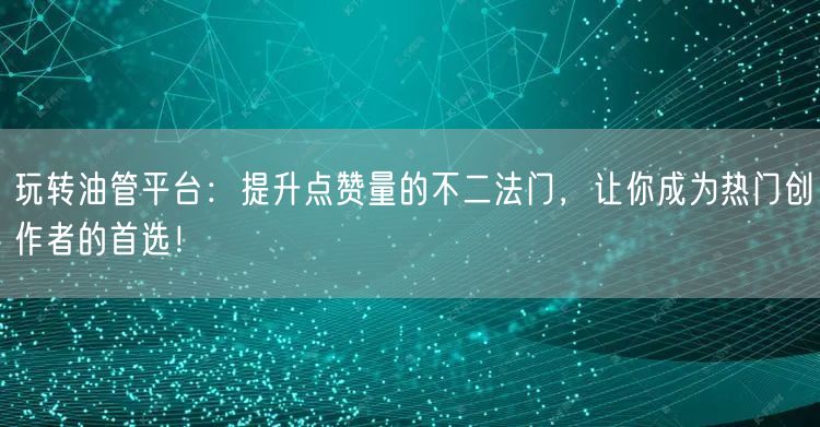 在当今数字化时代,社交媒体已成为人们日常生活的重要组成部分。其中,油管平台因其强大的内容传播能力和巨大的用户群体而受到广大创作者的青睐。想要在众多的创作者中脱颖而出,快速提升点赞量成为热门创作者,掌握玩转油管平台的不二法门至关重要。本文将为你揭示提升点赞量的秘诀,助你成为油管平台的佼佼者!