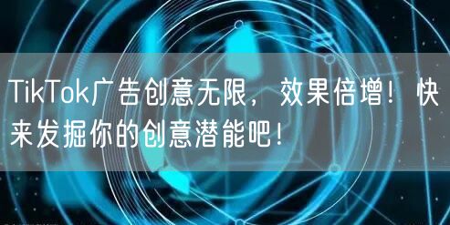 总之,TikTok广告创意无限,效果倍增!只要你发掘出你的创意潜能,结合TikTok平台的特点和营销策略,就能打造出具有吸引力的广告,实现广告效果倍增。快来尝试吧!