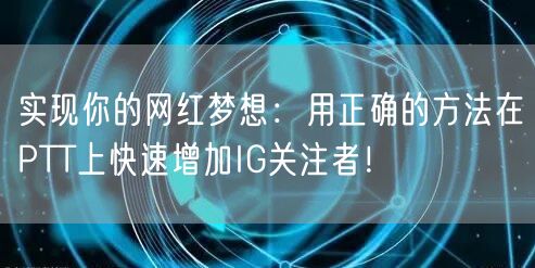 通过了解平台特点、优质内容创作、积极互动、合作与推广、利用平台特性、定期分析优化、遵守规则与诚信经营以及坚持不懈的努力,你可以在PTT上快速增加IG关注者,实现你的网红梦想。