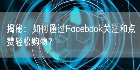 随着社交媒体的普及,越来越多的人开始在社交媒体平台上进行购物。Facebook作为一个全球性的社交媒体巨头,也不例外。那么如何通过Facebook关注和点赞轻松购物呢?本文将为您揭秘其中的诀窍。